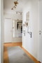 Välkommen in i en stor och rymlig hall. Här finns avhängningsmöjligheter samt plats för ytterligare möblemang om så önskas. Väggarna är genomgående ljusa i hela lägenheten.
