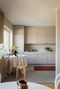 Köket är en riktig pärla. Det nya Epoq-köket från 2025 går i en mjuk beige ton med svarta, nätta beslag som ger ett modernt uttryck. Den ljusa bänkskivan skapar en fin kontrast och arbetsytorna är väl tilltagna. Här finns ugn, spis, fläkt, diskmaskin samt kyl och frys från Husqvarna. Klinkergolvet är både praktiskt och stilrent, och fönstret släpper in rikligt med dagsljus även här.