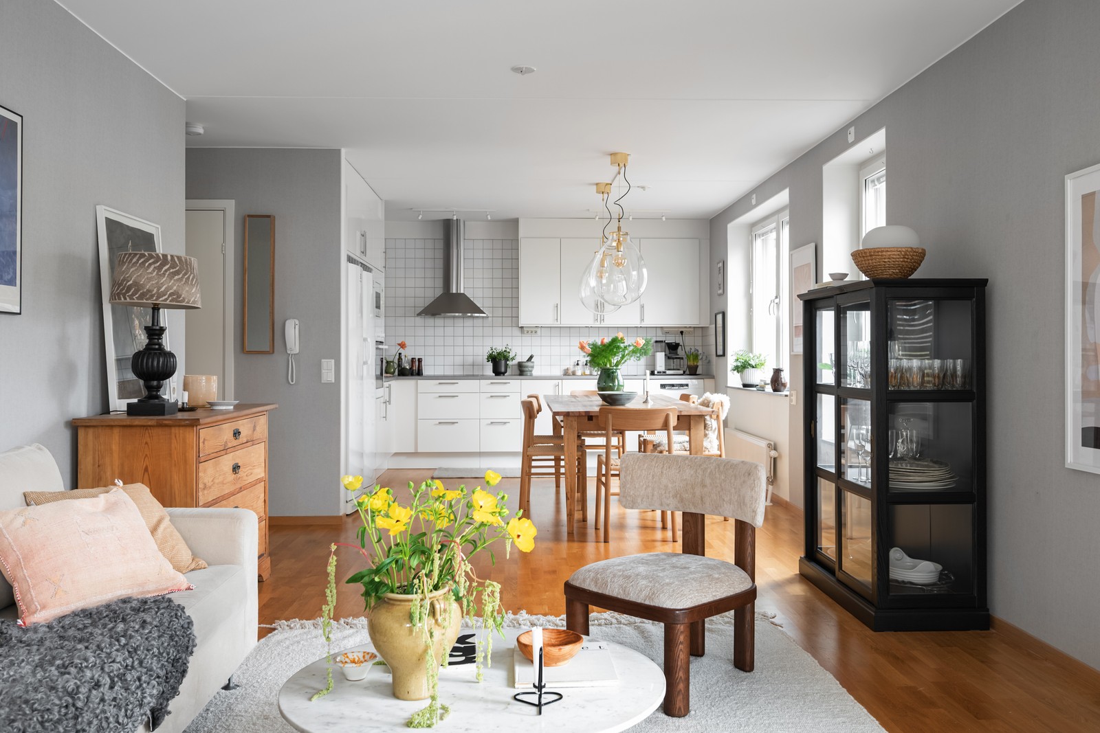 Trea i öppen planlösning med stor uteplats och grönska precis utanför!