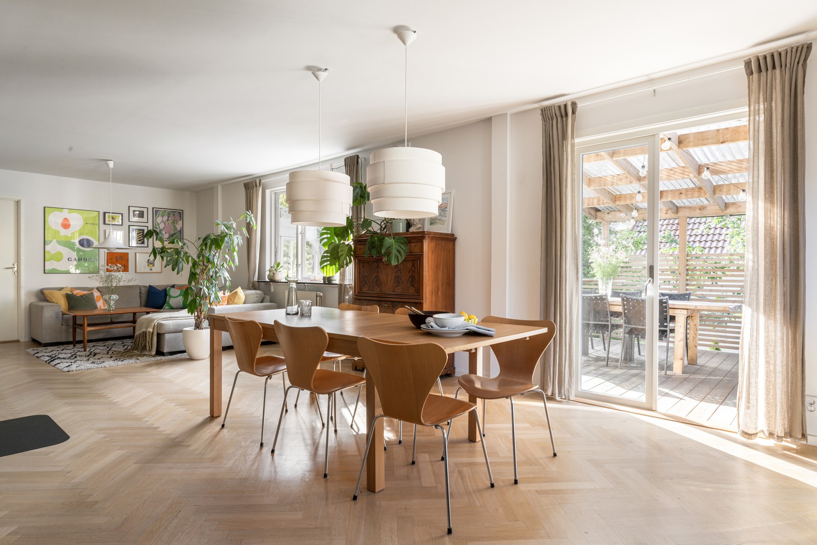 Renoverad villa om 245 kvm med öppen planlösning och idyllisk trädgård