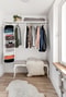 Tillbaka till hallen nås det stora sovrummet som men enkelhet rymmer en större dubbelsäng med tillhörande möblemang. I anslutning finns bostaden klädkammare som även går bra att använda som kontor eller barnrum då det finns ett fönster här som bidrar med dagsljus.