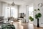 Rakt fram från hallen öppnar köket upp sig i en öppen planlösning mot vardagsrummet. Vita stilrena luckor, vita kakelplattor över bänkskivan grått. Den maskinella utrustningen består av induktionshäll, varmluftsugn, kolfilterfläkt, diskho, kombinerad kyl och frys samt diskmaskin, samtliga vitvaror i rostfritt. Här finns plats för ett större matgrupp, social planlösning som bjuder in till härliga stunder med nära och kära.