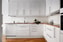Köket är i stilfullt utförande med modern köksinredning med vita luckor. Ovanför arbetsbänken sitter ett vitt kakel. Den maskinella utrustning bestående av diskmaskin, fläkt, induktionshäll, inbyggd micro och ugn samt kombinerad kyl och frys. Här ryms större matgrupp för både familj och vänner invid fönstret.
