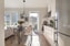 Köket från Vedum är praktiskt utformat med goda förvaringsmöjligheter. Maskinparken omfattas av en kombinerad kyl och frys, varmluftsugn, induktionshäll, mikrovågsugn, kolfilterfläkt samt integrerad diskmaskin. Ovanför den mörkgråa bänkskivan sitter ett vitt kakel. I anslutning till köket finns det plats för en matgrupp för flera personer.