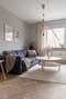Allrummet är rymligt och enkelt att möblera efter personlig smak och tycke. Här finns gott om plats för soffgrupp med tillhörande möblemang och även sängen ryms in. En vacker fiskbensparkett pryder golvet och du har en inbyggd garderob som underlättar förvaring.