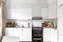 Köket är i stilrent utförande med mycket skåp där vita luckor, bänkskiva delvis i trä och delvis i aluminum samt ett vitt kakel ovan arbetsytorna sätter sin prägel. Maskinell utrustning bestående av fläkt, ugn med spishäll samt kombinerad kyl och frys. Här ryms matgrupp för både familj och vänner.