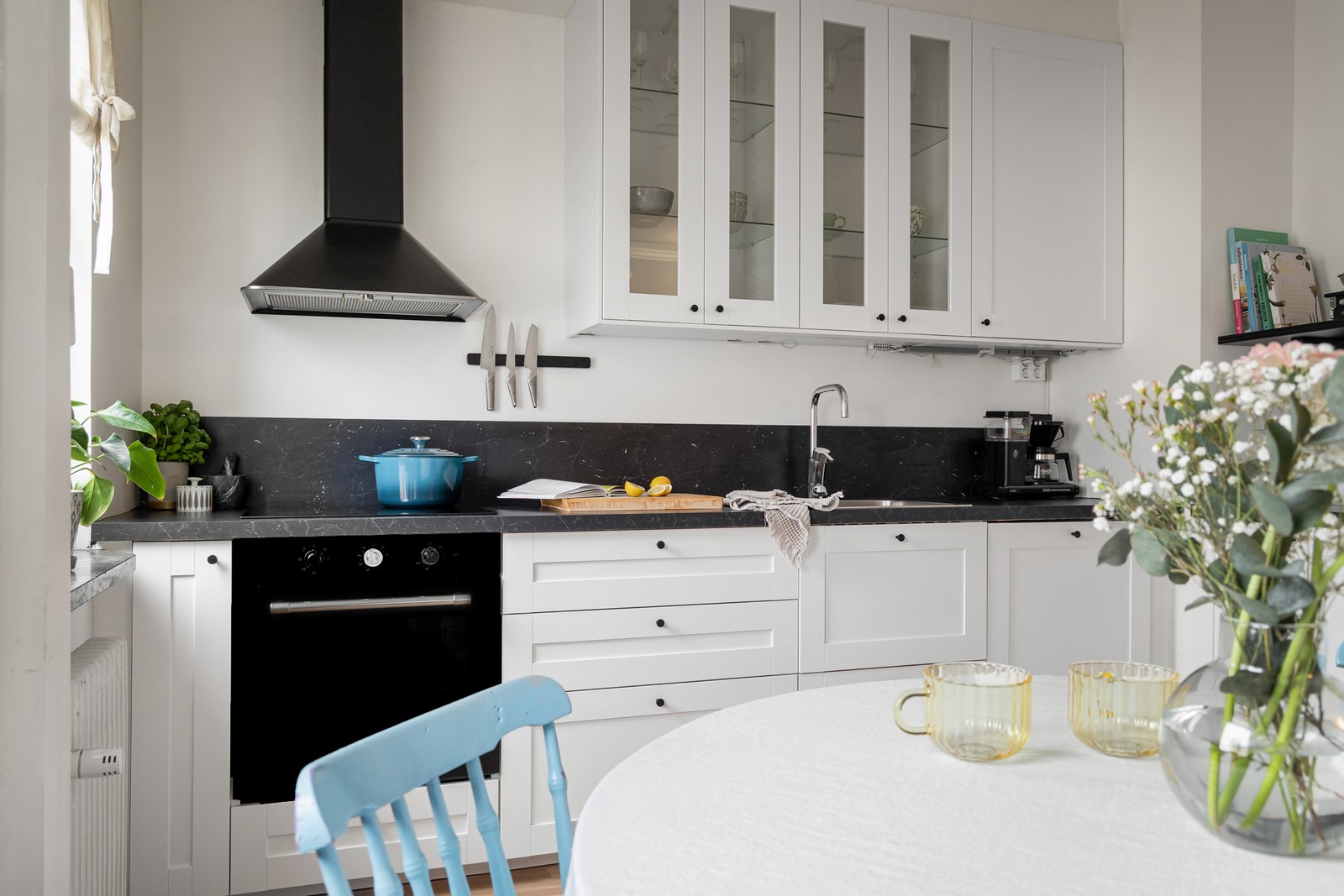 På Guldpokalsgatan 3C erbjuds en smakfull genomgångstvåa i fint skick med renoverat kök och badrum från 2020! Köket erbjuder goda arbetsytor och all tänkbar maskinell utrustning man behöver för att göra matlagning till en fröjd. Badrummet är helkaklat och har ett praktiskt vädringsfönster. Generöst vardagsrum med plats för både soffgrupp och matsalsbord, vilket skapar en god sällskapsyta. Här finns mycket charmiga detaljer så som bevarat fiskbensparkett. Från vardagsrummets sociala planlösning nås balkongen i soligt sydvästläge och erbjuder en trivsam fri vy över de lugna och gröna omgivningarna. Bostaden har genomgående ljusa väggar och fina golv. I sovrummet finns det plats för dubbelsäng med tillhörande möblemang samt för praktisk klädesförvaring i två garderober. Till bostaden hör även ett vinds- och källarförråd.