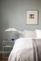 I anslutning till vardagsrummet nås det rymliga och rofyllda sovrummet med ljust blå väggar och charmigt brädgolv. Gott om plats för dubbelsäng och ytterligare möblemang. förvaring i inbyggda garderober.