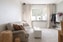 I bostadens andra ände ligger det avskilda sovrummet som rymmer en större säng. Här finns förvaring längs kortsidan.