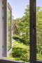 I vardagsrummet finns utrymme för både soffa och säng om så önskas. Fönstret med lummig utsikt bidrar med fint ljusinsläpp.