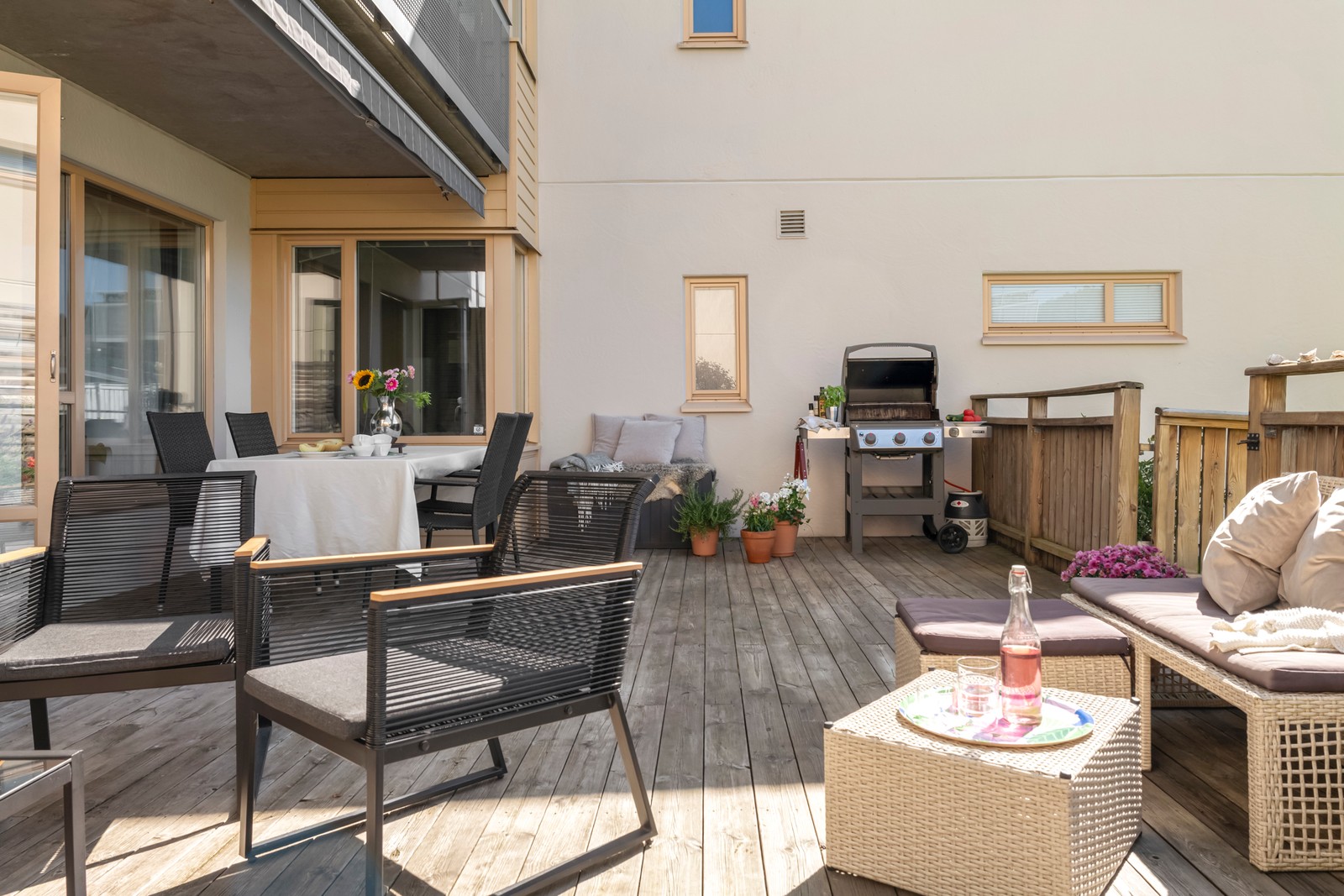 Nu kan vi presentera denna rymliga bostad om ca 82 kvm i ett lugnt och barnvänligt område. Bostaden erbjuder ett stort kök i delvis öppen planlösning tillsammans med vardagsrummet. Med utgång från vardagsrummet kliver ni ut till en generös uteplats i härligt solläge. Två bra sovrum och ett helkaklat modernt badrum. Goda förvaringsmöjligheter i form av klädkammare och förrådsutrymme.