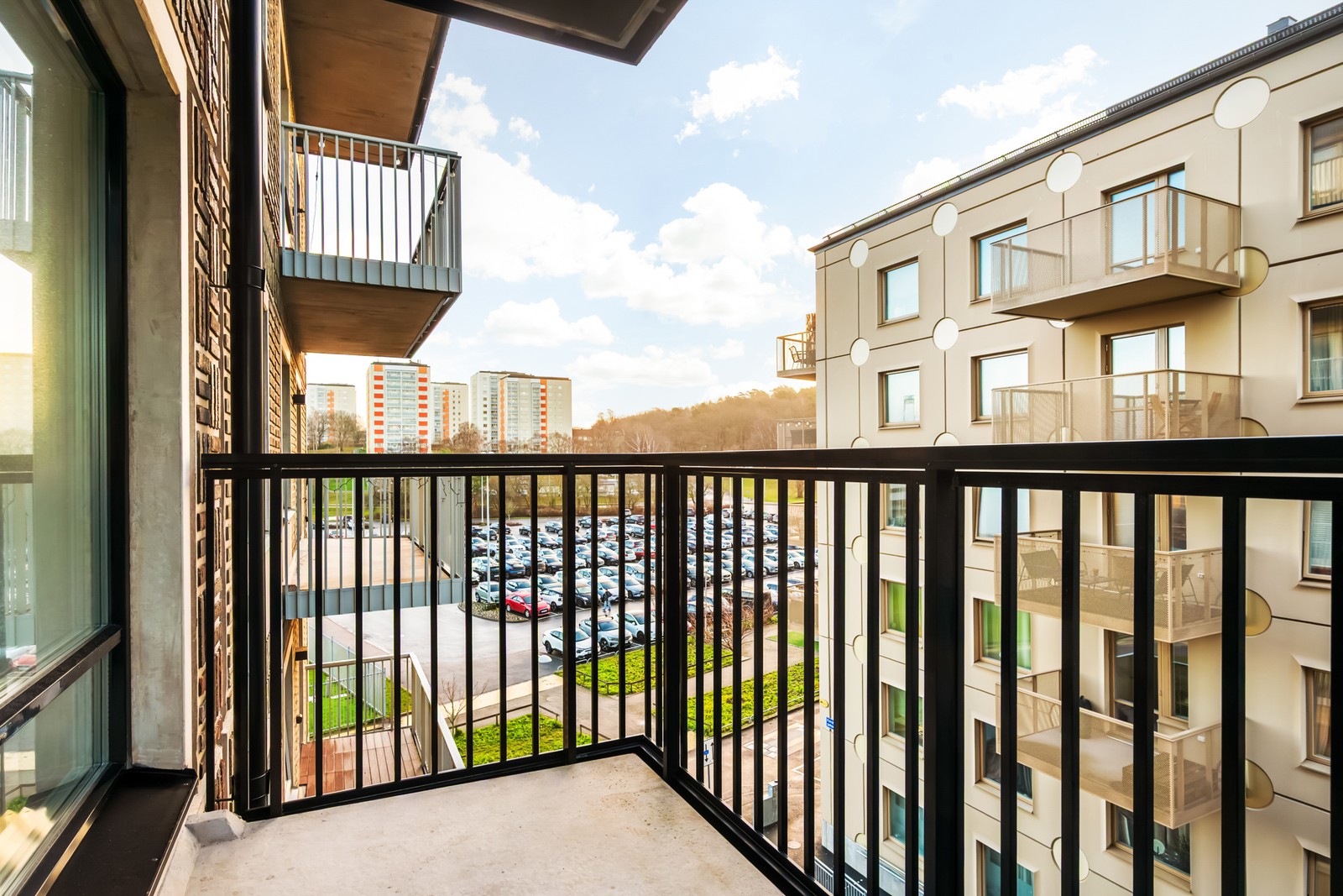 Här bor du med ett attraktivt läge mitt på centrala Hisingen, nära till allt och i en byggnad som ger en internationell torgkänsla. Precis utanför byggnaden går flera spårvagnslinjer som tar dig till centrala Göteborg på ca 7-8 minuter och inom promenadavstånd finner du bland annat Bravida-arena, Lundbybadet samt Wieselgrensplatsen med stort serviceutbud av matbutik, frisör, restaurang med mera. Precis utanför i området finns matbutik och gym. I närområdet hittar du även Kville Saluhall och naturområden som Flunsåsparken samt Rambergets hänförande utsikt.