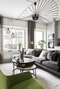 Vardagsrummet och köket är sammanlänkat i en öppen och social planlösning. Här ges plats för soffgrupp och tillhörande möblemang. Här går det att ta ner väggen mellan vardagsrum och sovrum för att göra det till en stor tvåa.