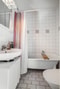 Badrummet är stambytt 2010 och helkaklat i ljusa färger. Badrummet består av wc, badkar, handfat med underliggande skåp samt spegelskåp.