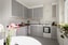 Rakt fram från hallen ligger köket som är i originalutförande men med snyggt målade köksluckor i harmonisk grå ton. Ovan arbetsbänken sitter ett vitt kakel. Köket är utrustat med spis och kombinerad kyl och frys. Här ges även god plats för en matgrupp för flera personer.