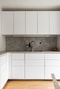 Vidare in till höger ligger det moderna köket med vita släta luckor, vacker gråmelerad bänkskiva och matchande stänkskydd mot väggen. Den maskinella utrustningen består av spis med fläkt med inbyggd ugn och mikro samt kombinerad kyl och frys. Här ryms ett större matbord intill fönstret. Även från köket finns utgång till uteplatsen. Väl tilltagen med trätrall och skyddat läge som inhängnas av staket.