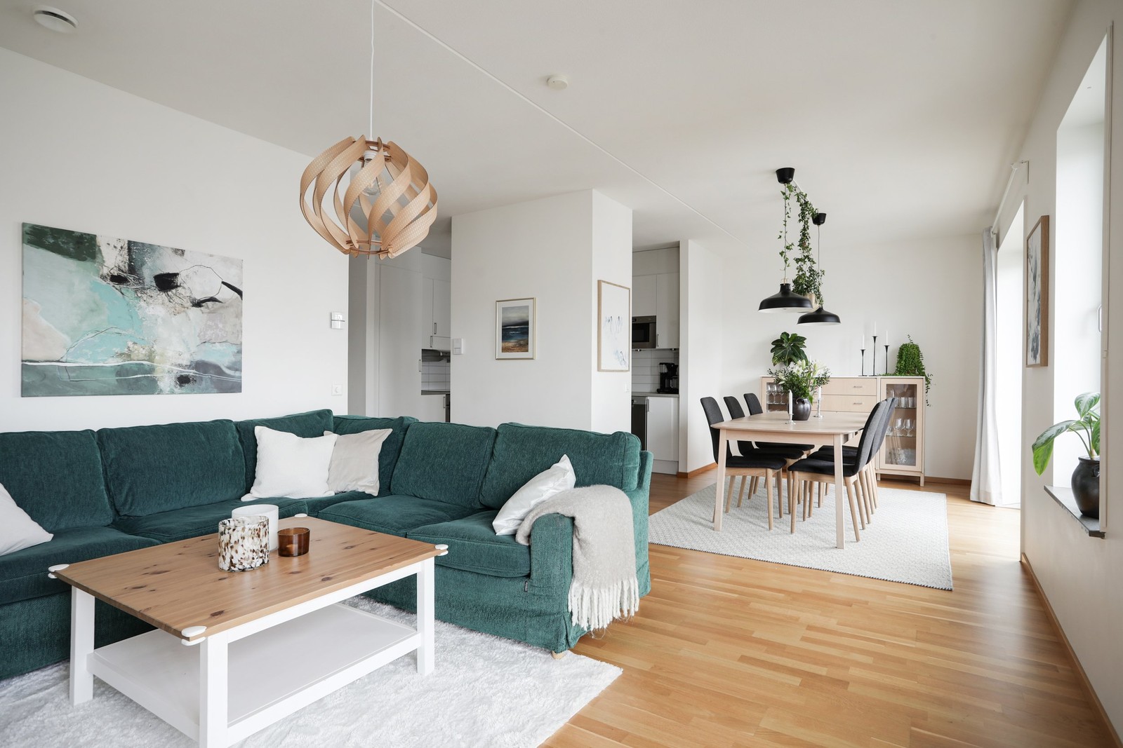 Härlig utsikt från våning 6 med en fantastisk planlösning och väldisponerade 96 kvadratmeter och tre balkonger mitt i Kvillebäcken.