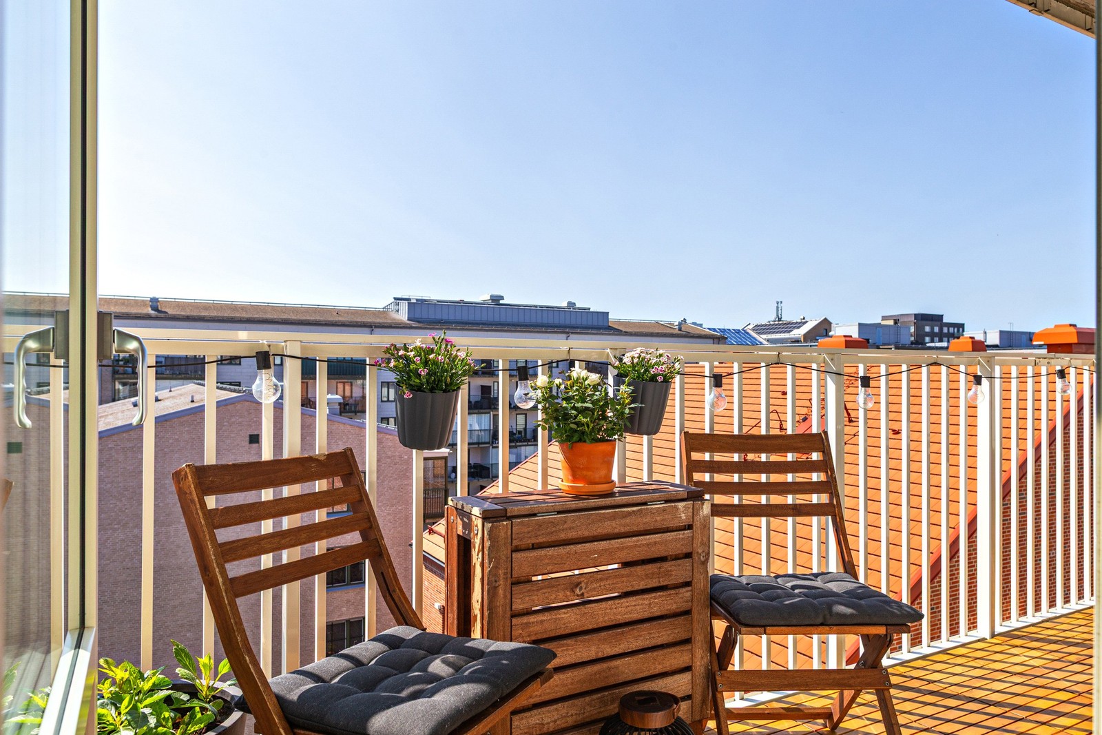 Föreningen har takterrasser som nås via hissen. Här är den perfekta platsen att umgås med grannar och bekanta med en underbar cityvy framför sig.