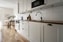 Vidare nås kök i modernt och smakfullt utförande. Vita köksluckor och vitt kakel ovan den fina träbänkskivan. Maskinell utrustning i form av kombinerad kyl och frys, spis, ugn, spisfläkt, inbyggd mikrovågsugn samt integrerad diskmaskin.
