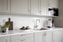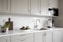 Köket är från Marbodal och i modernt och smakfullt utförande med grå fronter som matchas med vitt kakel samt en vit bänkskiva av kompositsten. Maskinell utrustning består av integrerad diskmaskin, ugn med häll, fläkt samt kombinerad kyl och frys. Större middagsbordet ryms med fördel intill fönstret och du har en fransk balkong till vädring en varm sommardag.