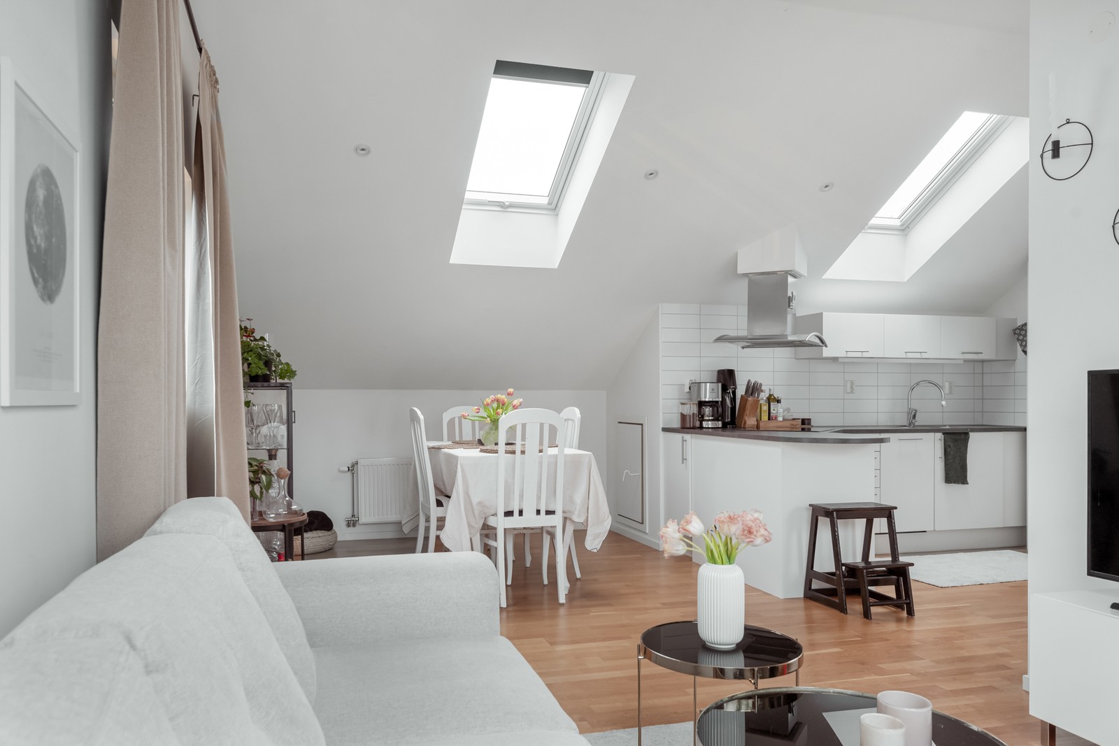 Unik vindsvåning med sovalkov och öppen planlösning med ett läge mitt i villa-idyllen!