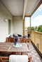 Välplanerad gaveltrea med dubbla balkonger i insynsskyddat läge med utsikt över trädkronorna!