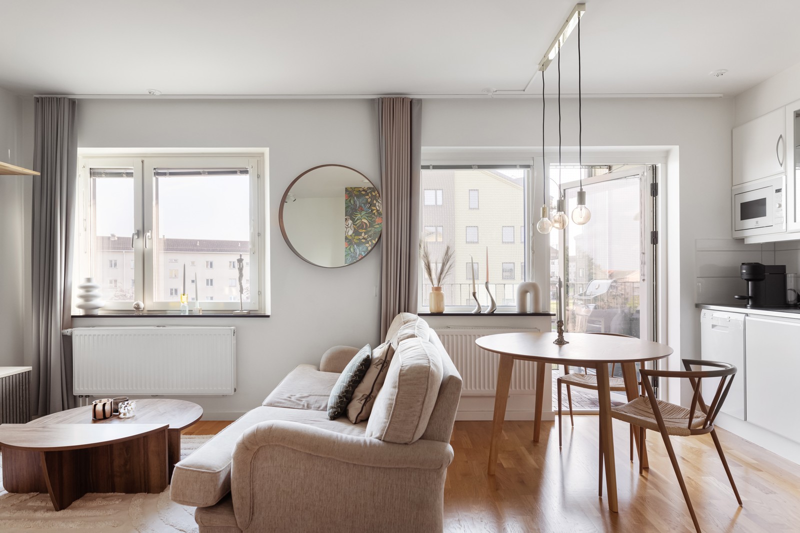 Modern etta med sovalkov samt en rymlig balkong i sydvästläge.