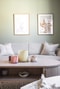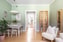 Till vänster ligger vardagsrummet som ger plats åt både soffa och matbord om så önskas. Väggarna pryds av en lugn grön nyans.