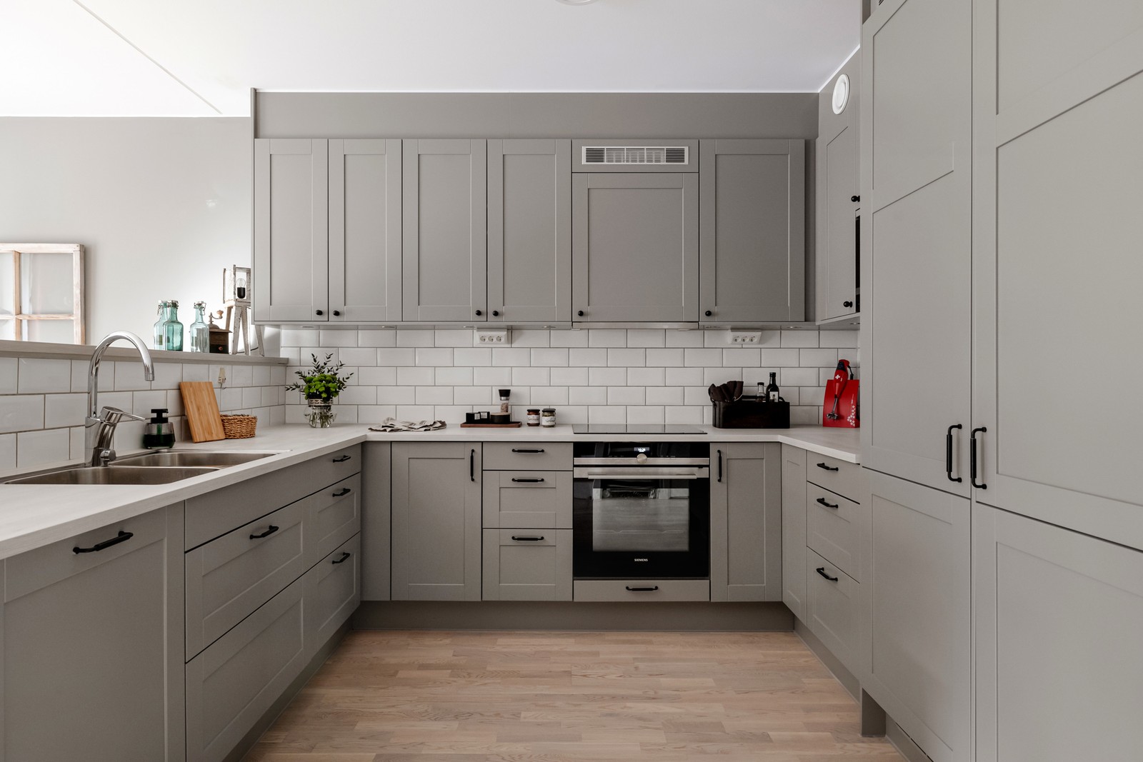 Trettioett är Svanenmärkt, vilket innebär att du alltid får hög kvalitet, oavsett vad du väljer för inredning. Denna bostad har ljus ekparkett, greigea köksluckor med detaljer från Marbodal och ljusmålade väggar. Detta är noga utvalt för att skapa en stilren helhet att inreda kring. Köken har miljöklassade vitvaror från Siemens med bland annat induktionshäll. Två badrum med vitt kakel på väggarna samt grått klinker på golvet. Tvättmaskin och torktumlare från Siemens.