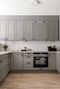 Vidare in i hemmet hittar du det smidiga vinkelköket som smälter samman med vardagsrummet och bildar en trevlig social yta för hela familjen. Gråa köksluckor signerade Marbodal ger en snygg kontrast till den vita bänkskivan och det vita kaklet ovan. Den maskinella utrustningen från Siemens består av spis, ugn, mikro, fläkt, diskmaskin samt kyl och frys i fullhöjd.