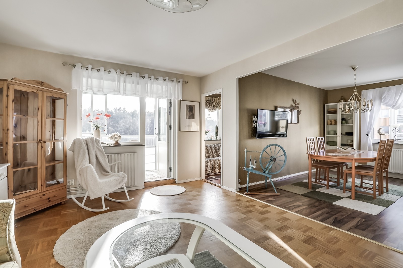 Högt belägen fyra med ett centralt läge på Hisingen. Välplanerad hörnlägenhet med en stor inglasad balkong i soligt söderläge som erbjuder en härlig vy mot Ramberget. Bostaden präglas av stora fönsterpartier i soligt läge, vilket ger ett vackert ljusflöde. Generöst vardagsrum - perfekt för social gemenskap. Idag är ena sovrummet med öppen planlösning mot vardagsrummet. Här finns möjlighet till tre rymliga och rogivande sovrum för den som önskar. Helkaklat badrum samt gästtoalett som renoverades i samband med stamrenoveringen. Lägenheten har bra förvaringsmöjligheter.