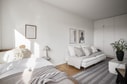 Kvadratsmart etta med fransk balkong och stora fönsterpartier som gör att ljuset flödar fritt.