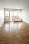 Vardagsrummet är rymligt och lätt att möblera efter personligt tycke och smak, här erbjuds gott om plats för soffgrupp och middagsbord. På golvet finner du ett bevarat parkettgolv. Fönstret och utgången till balkongen drar ögonen till sig tack vare det höga läget som erbjuder vyer som sträcker sig milsvid. Balkongen ligger i västerläge och ett fritt läge vilket innebär sol från mitt på dagen och du kan avnjuta solnedgången på första parkett.