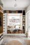 PLANLÖSNING ENTRÉPLAN: Rymlig och tillbyggd entré med gott om förvaringsutrymmen i form av platsbyggd garderob med lådor och hyllor. En djup fönsternisch med generös sitthörna och härlig utsikt över trädgården. Här finns även en praktisk kontorsdel och på golvet ligger ett snyggt klinkergolv med behaglig golvvärme.