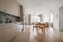 Kök och vardagsrum är förenade i öppen planlösning. Modernt snyggt kök med ljusa skåp och lådor som bryter av fint. Bänk av slitstarkt laminat och snyggt kakel på väggen. Helintegrerad diskmaskin. Övriga vitvaror är induktionshäll och varmluftsugn. Inbyggd micro samt kombinerat kyl och frys i rostfritt.