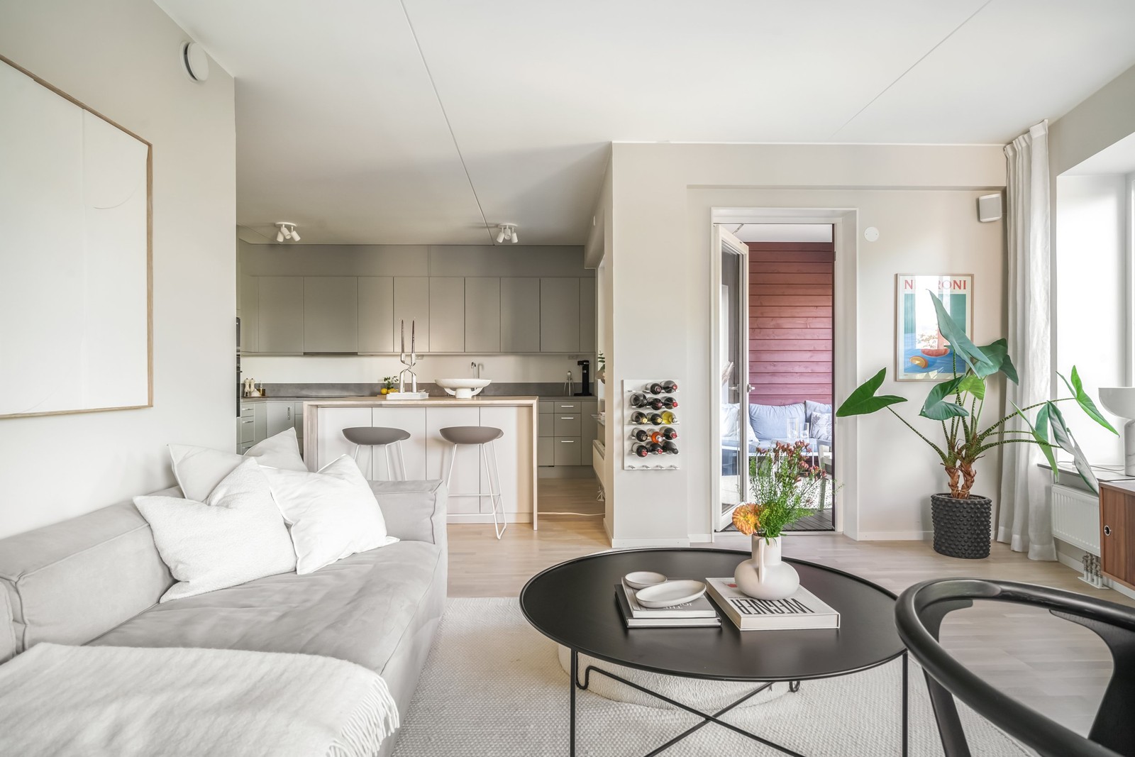 Här erbjuds en modern, smakfull och bra planerad bostad. I hörnläge får du fint ljusinsläpp.