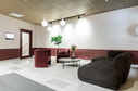 I husets entrén finns en lounge-del med fåtöljer och bord.