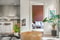 Öppen planlösning mellan kök och vardagsrum med plats för matbord intill köket gör att du får ett social umgänge men ändå att varje rum har sin naturliga plats. Idag är det en köksö installerad i köket men den kan tas bort enkelt eller flyttas.