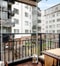 Balkong i söderläge om ca 7 kvm. Denna är inglasad och inglasningen kan skjutas undan väldigt smidigt.