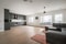 Stilrent grått kök från Marbodal. Här vitvaror inkluderar : kylskåp, frys, induktionshäll, fläkt, ugn, mikro och integrerad diskmaskin. Vardagsrummet är stort och härifrån nås den inglasade balkongen.
