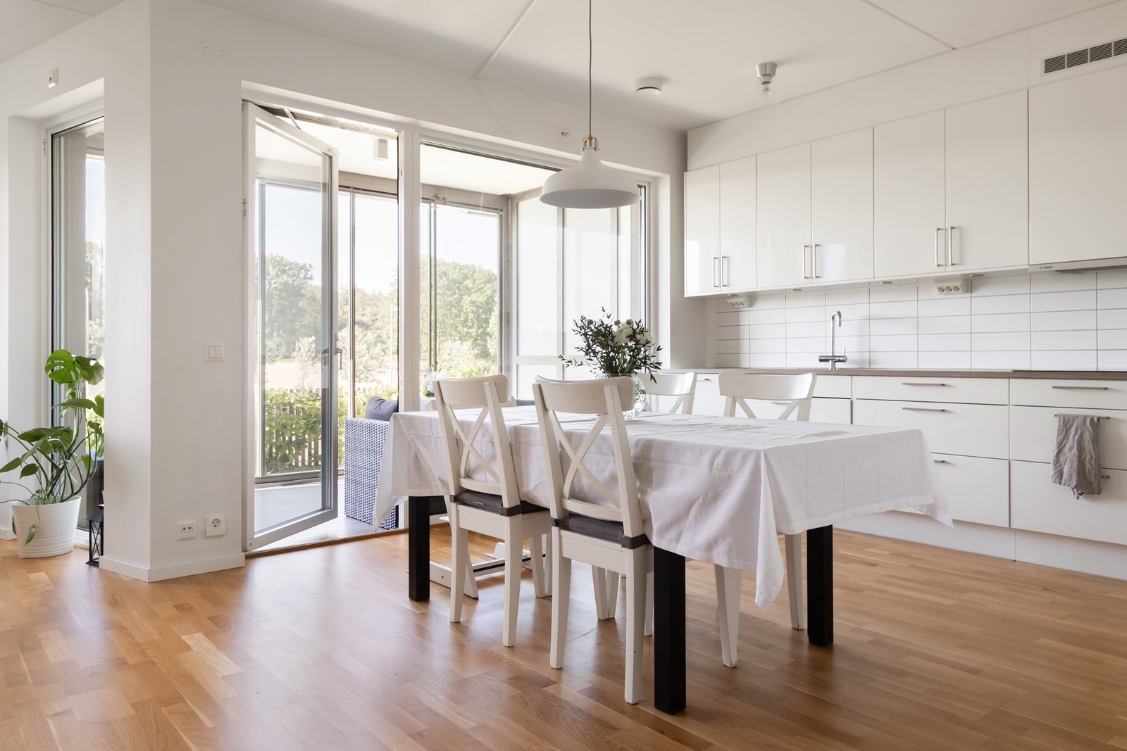 Stilren trea med två härliga uteplatser varav den ena är inglasad med tillgång till förgårdsterrass
