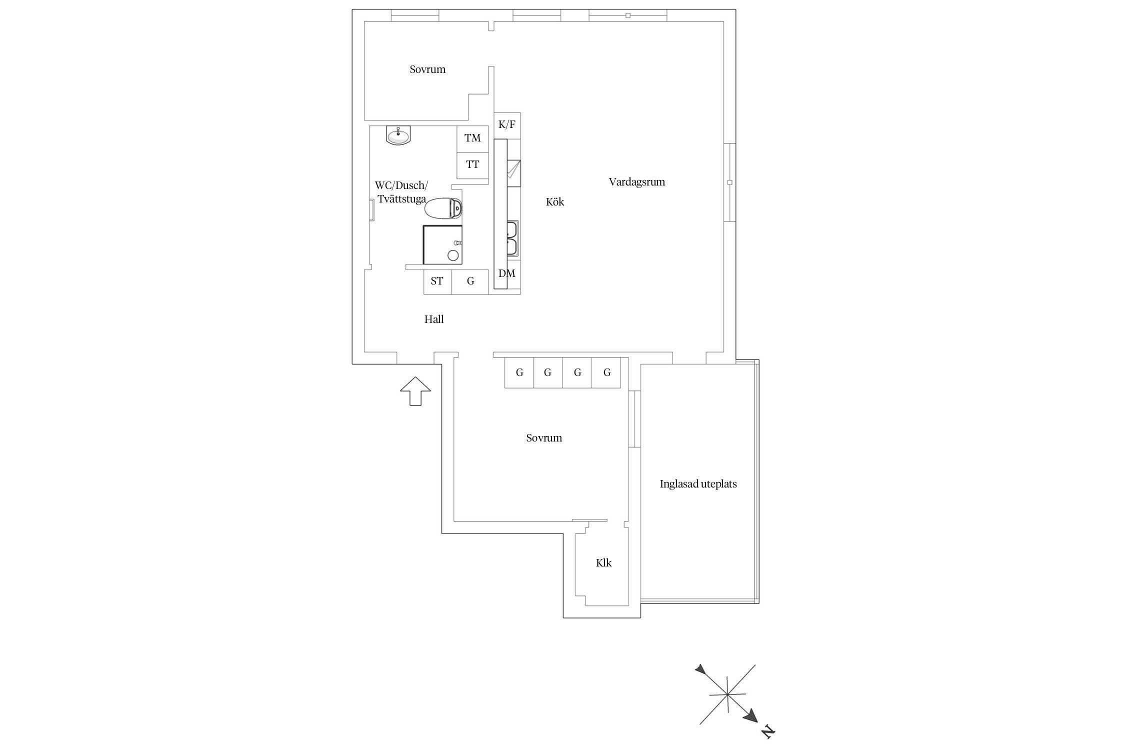 Stor inglasad uteplats mot föreningens privat gård. Gården är dessutom perfekt för barnens lek och du har full översyn. Uteplatsen är dessutom inglasad så du kan njuta av den stora delar av året. Väl disponerad med kök och vardagsrum i öppen planlösning.
