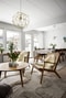 Vardagsrum i vinkel med helt nytt och snyggt trägolv (Bjelin) samt ljusa väggar och stort fönsterparti vilket gör rummet luftigt och fint. Här finns gott om plats för såväl sällskapsdel som rejält matbord med plats för många gäster. Alldeles nyligen (hösten 2025) revs den gamla golvkonstruktionen ut i hall, kök och vardagsrum och ersattes med mekanisk ventilerat golv.