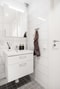 Badrummet nås från hallen och är lika stilrent och lyxigt som praktiskt. Det är utrustat med ett handfat med underliggande kommod och ett ovansittande spegelskåp. Här finns dusch som är utrustat med duschvägg i klarglas, wc samt en kombinerad tvättmaskin & torktumlare.