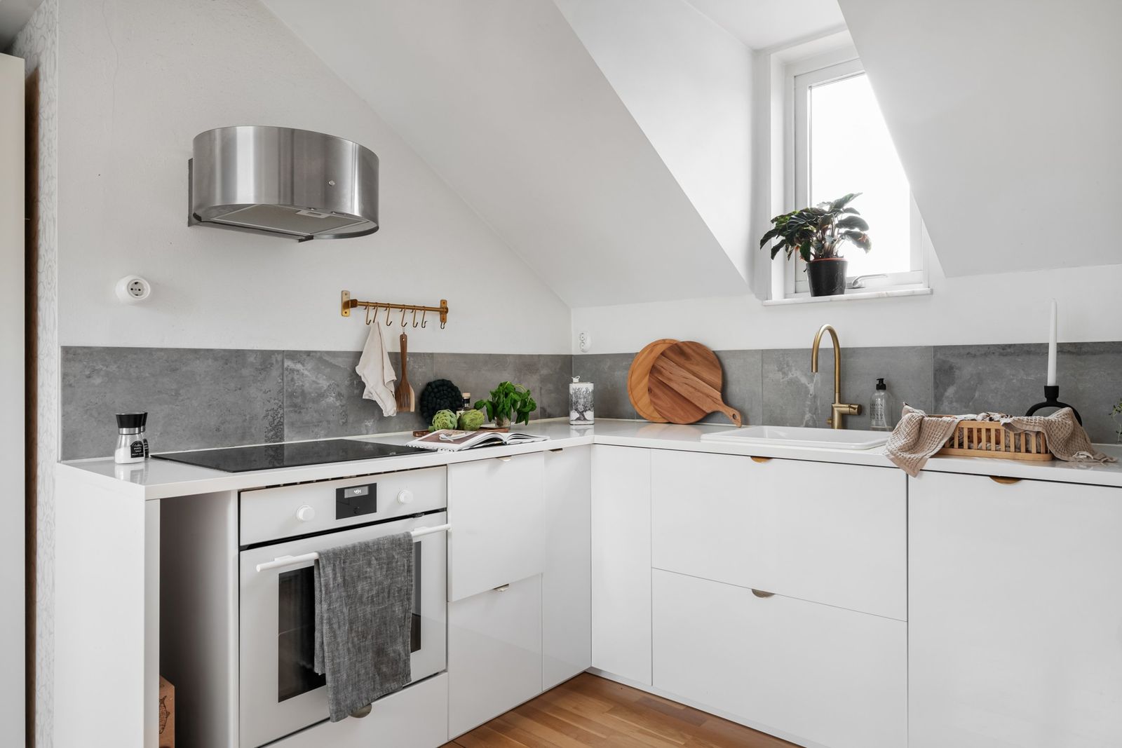 Välkomna högst upp i huset till denna fina vindstvåa med öppen planlösning, generösa ytor och en solig balkong. Lägenheten präglas av en luftig känsla med takfönster, vackert parkettgolv och ljusa, stilrena ytskikt. Det rymliga köket smälter samman med vardagsrummet i en öppen planlösning som ger plats för ett stort matbord och härliga sociala ytor. Sovrummet, som har utsikt över den lummiga grönskan vid Bunkeberget, ger dig en lugn och harmonisk känsla. Det stora badrummet är rymligt, vilket ger extra bekvämlighet i vardagen. Här bor ni med närhet till både grönområden och stadens puls.