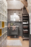 Välkomna högst upp i huset och in i en rymlig hall där ytterkläder och skor enkelt kan organiseras. Tre inbyggda garderober erbjuder utmärkt förvaring för kläder och annat. På golvet löper vacker parkett och väggarna är genomgående ljusa, vilket ger ett stilrent och luftigt intryck. Här strömmar solljuset in genom balkongdörren.