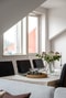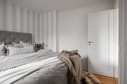 I sovrummet finns gott om plats för en dubbelsäng, sängbord och en mindre förvaringsmöbel. Det höga läget och fönstret som vetter mot skogspartiet skapar en rofylld atmosfär och ger alla förutsättningar för att sova gott