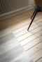 En välkomnande hall som ger ett inbjudande första intryck och öppnar upp sig mot vardagsrummet. Här finns praktisk förvaring bakom originalskåpen, samt en naturlig plats till vänster för skor, jackor och en hatthylla. Väggarna är målade i vitt, vilket gör att hallen känns ljus och luftig. Den enhetliga ljusa golvet binder samman hallen med övriga rum på ett smakfullt sätt.