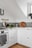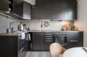 Ett charmigt och funktionellt kök där modern elegans möter äldre detaljer. Köket renoverades 2018, och 2022 togs det vackra originalbrädgolvet fram, vilket ger en genuin känsla. Väggarna är vita, och de mattsvarta skåpsluckorna skapar en snygg kontrast mot den mörka ekmönstrade bänkskivan. Ett fönster släpper in fint ljus och ger köket en ljus och trivsam atmosfär. Det finns plats för ett runt matbord med stolar, vilket gör köket till en perfekt plats för både vardagsmåltider och trevliga middagar. Här finns rostfri kyl och frys (2020), diskho, induktionshäll, ugn och diskmaskin.