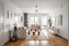 Köket från Marbodal är stilrent och funktionellt med vitvaror från Bosch. Ovanför bänkskivan i laminat sitter ett vitt kakel som skapar en klassisk inramning. Här finns gott om arbetsyta och plats för ett större matbord där familj och vänner kan samlas kring vardagsmiddagar och långsittningar. Två fönsterpartier fyller rummet med ljus.
